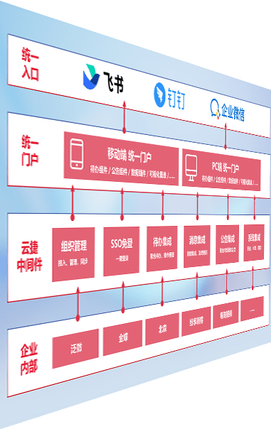 对协作平台提供支持服务,,,支持企业应用与协作平台对接,,,,包含组织同步、、、消息集成、、待办集成等。。。。支持目前主流的协作平台:钉钉、、、企微和飞书。。。